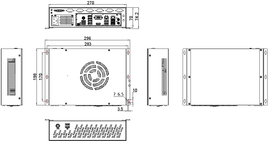 機箱尺寸 270mm(寬) * 198mm(深) * 70mm(高)